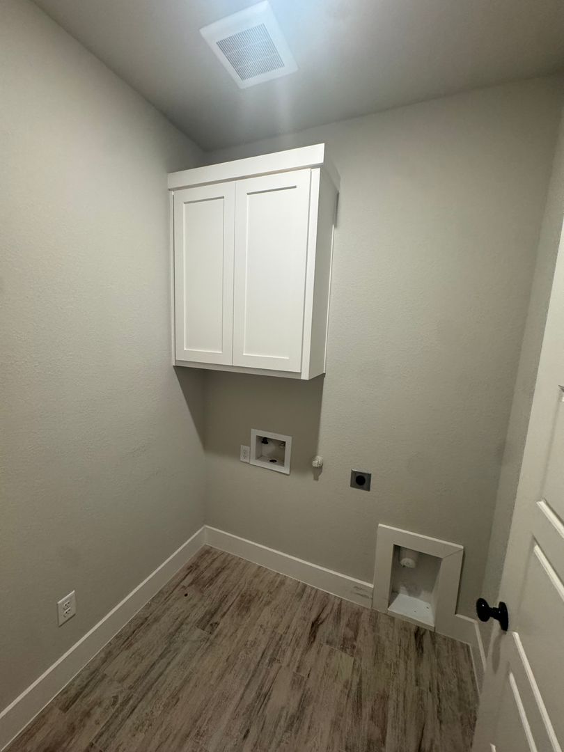 Enjoy custom cabinetry in the laundry directly across from your garage and mudroom space.