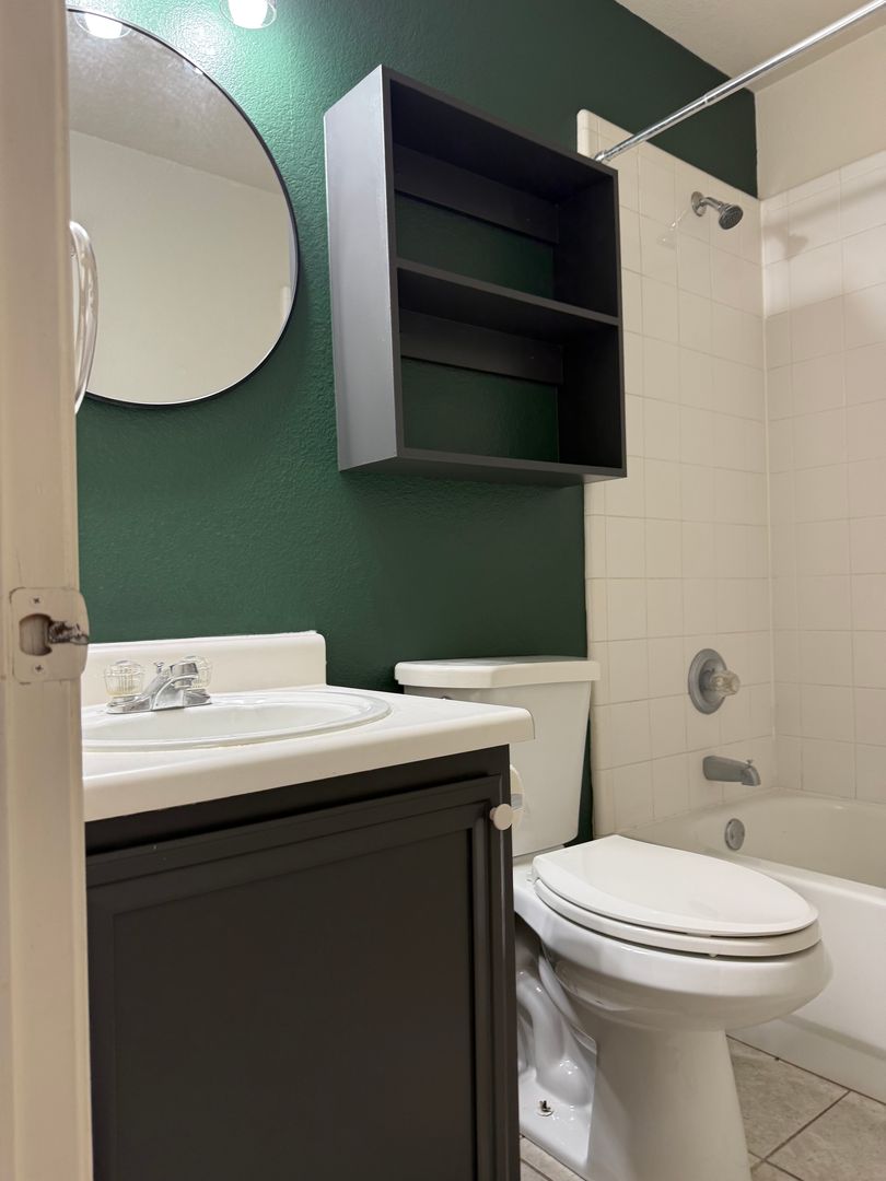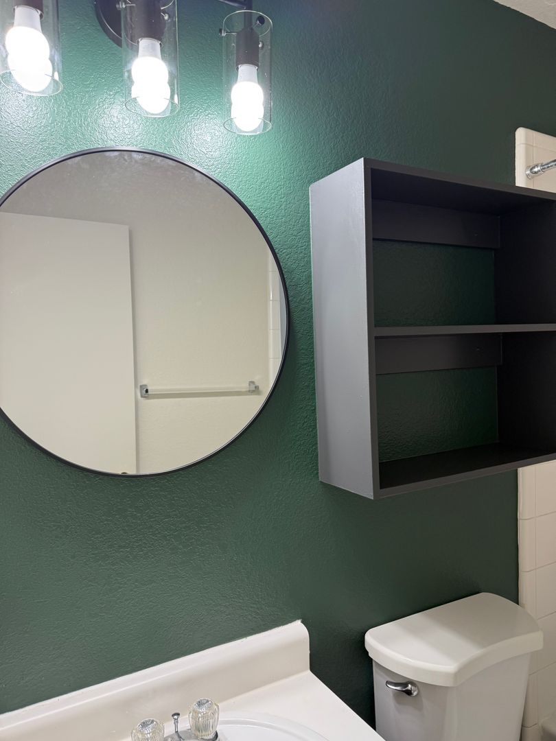The bathrooms have new modern lighting & paint!